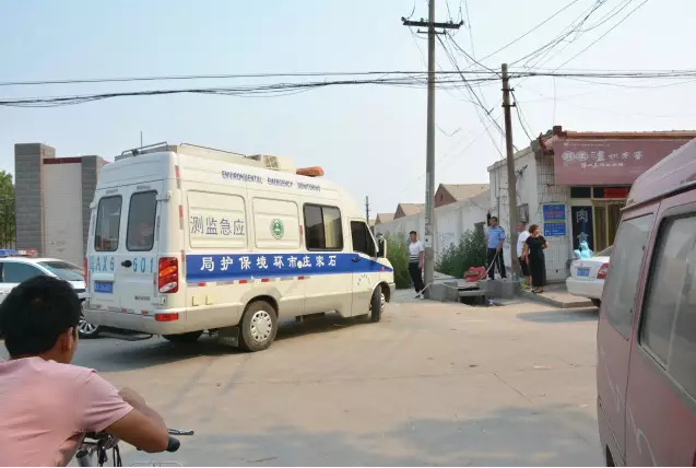石家莊市環(huán)保局的應(yīng)急監(jiān)測車開進事發(fā)現(xiàn)場。